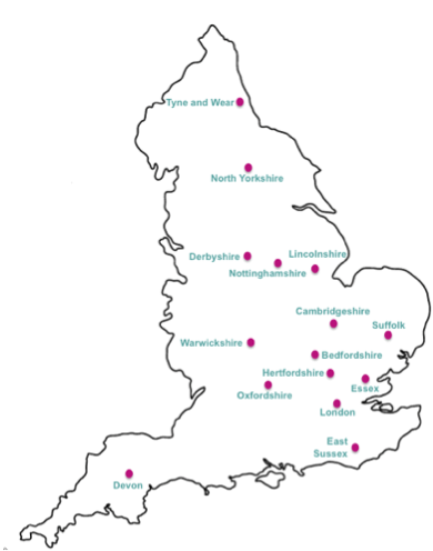 Picture used with permission from Evidence from the Front Line. This picture shows the locations of the schools involved in the project.