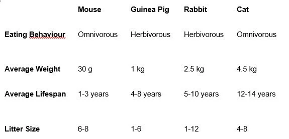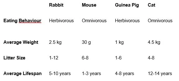 Here's a matrix with information on some common pets (inspired by the wildcat matrix in the study):